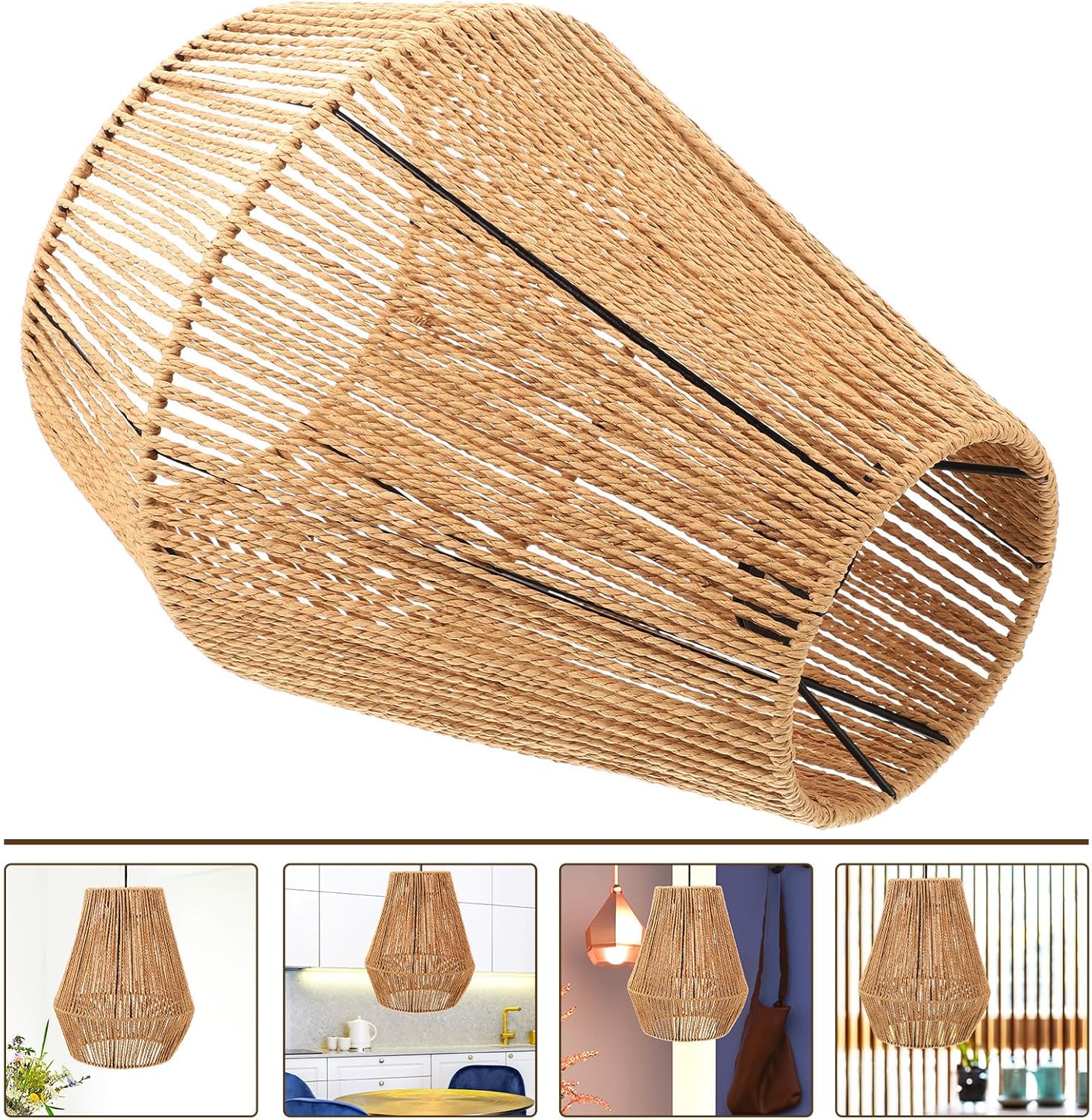 Package List 1 x lampshade Features -Material: paper string -Product Info:Braided paper chandelier -Color:Light Brown -Size:30.00X25.00X25.00cm/11.79X9.82X9.82in - Suitable for stairs, corridors, bedrooms, living rooms, lounges, bedrooms, offices, corridors, bars, restaurants, cafes, shops, clubs, lofts, lounges bedroom lampshade. - Well made of sturdy and safe material, the lamp shade is reliable and durable, which could be used for a very long time. - Elegant and stylish, this rustic light cover will protect light bulb(not included) as well as decorate your home shades for bedroom lamp. - The paper string weaving lamp shade, create and relaxed atmosphere within your home, perfect home decoration Creative Hanging Lampshade. - Special woven design and in fine craftsmanship. The best replacement for your old, broken one woven lampshade.Goods Informationlamp can match with the rustic style furniture, good decoration for hotels etc.bedroom lampshade It looks simple and elegant.hanging lamp shades It makes your room and bedroom full of warmth and happy.lamp shades This hanging lamp cover is made from for durable use.lamp shades for restaurant With the paper string woven design, it looks so chic