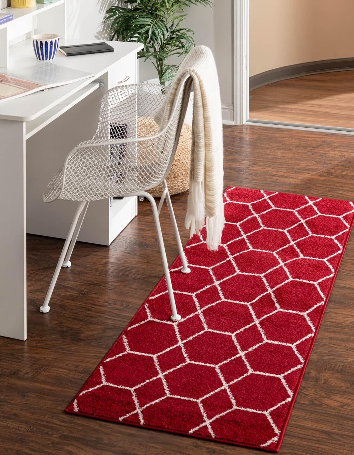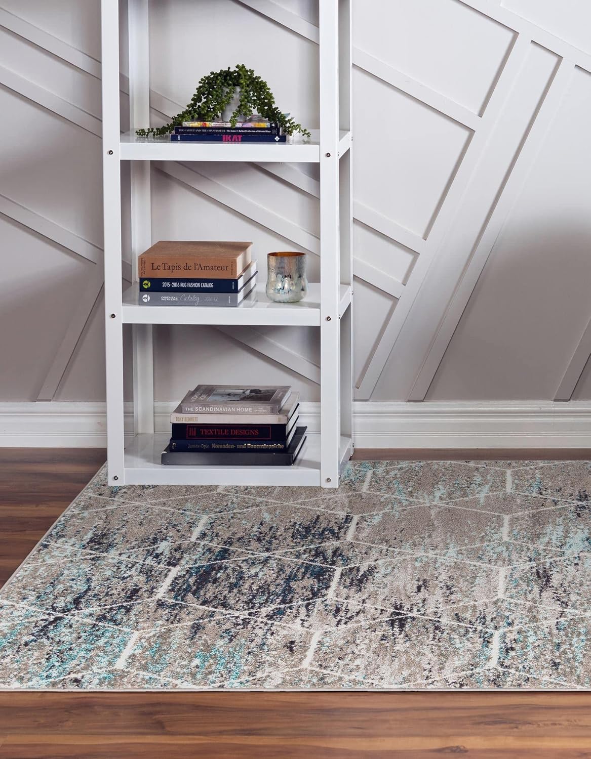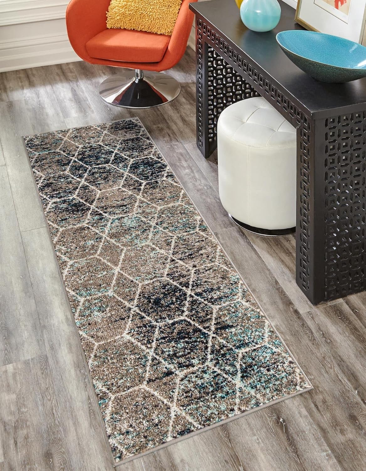 Say hello to clean, contemporary style. With sharp, geometric lattice patterns and cool modern colors, the Lattice Frieze Collection brings a sophisticated flair to any space. A variety of trellis designs ranging from traditionally inspired to asymmetric and mathematical give you plenty of options. Cool blues, grays, and white give these rugs a soothing, up-scale look while a gently distressed texture keeps things from getting too stuffy. The medium-height 1/3" polypropylene pile is soft underfoot and easy to clean, best in medium traffic areas like living rooms and dining rooms.
